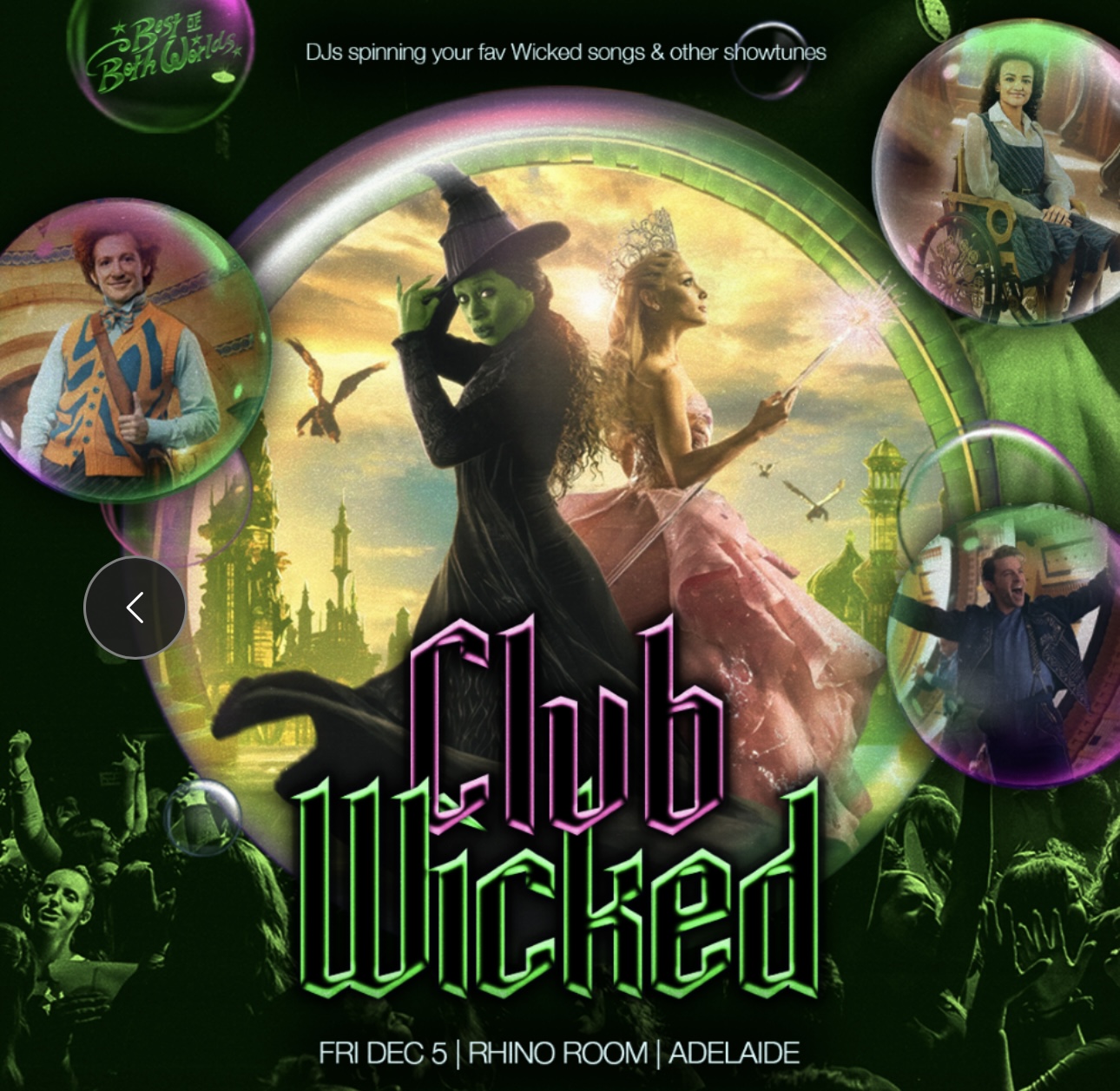 To celebrate the release of Wicked: For Good, Best of Both Worlds DJs will be spinning songs from Wicked PLUS all your favourite musicals all night long!